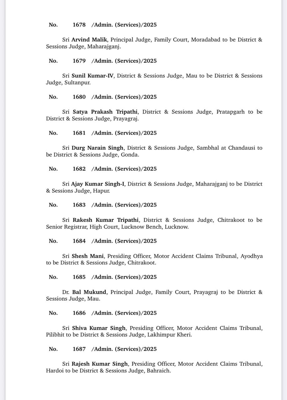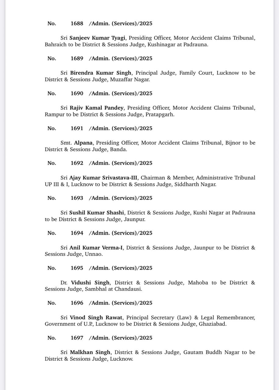 उत्तर प्रदेश में जिला जजों के बड़े तबादले हुए हैं। महराजगंज समेत कई जिलों में नए जिला जजों की तैनाती की गई है। यह कदम न्यायिक प्रणाली को बेहतर और मजबूत बनाने के उद्देश्य से उठाया गया है। देखें पूरी लिस्ट