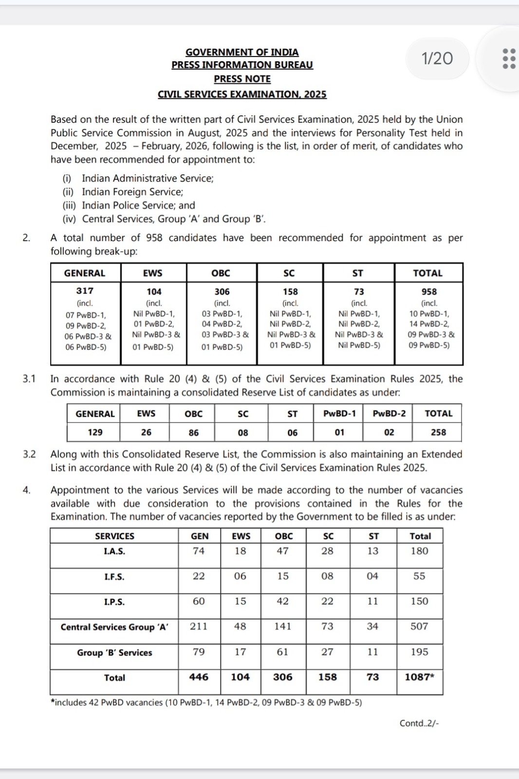 इस वर्ष घोषित परिणाम के अनुसार कुल 958 उम्मीदवारों का चयन विभिन्न केंद्रीय सेवाओं के लिए किया गया है। चयनित उम्मीदवारों को भारतीय प्रशासनिक सेवा (IAS), भारतीय पुलिस सेवा (IPS), भारतीय विदेश सेवा (IFS) समेत कई अन्य प्रतिष्ठित सेवाओं में नियुक्ति का अवसर मिलेगा। राजेश्वरी सुवे एम जो तमिलनाडु के मदुरै की रहने वाली है उनकी मेहनत, लगन और उत्कृष्ट तैयारी का परिणाम माना जा रहा है। उनकी सफलता ने देशभर के लाखों सिविल सेवा अभ्यर्थियों को प्रेरित किया है। राजेश्वरी सुवे एम ने UPSC में सफलता से पहले भी राजेश्वरी प्रशासनिक सेवा में अपनी पहचान बना चुकी थीं। उन्होंने तमिलनाडु लोक सेवा आयोग (TNPSC) की ग्रुप-I परीक्षा में टॉप किया था और डिप्टी कलेक्टर पद हासिल किया था। उनकी यह उपलब्धि पहले ही उन्हें तमिलनाडु के युवाओं के बीच प्रेरणा बना चुकी थी। अब UPSC में AIR-2 हासिल कर उन्होंने अपने लक्ष्य को और ऊंचा कर दिया है।