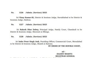 प्रयागराज: ये खबर आप सबसे पहले डाइनामाइट न्यूज़ पर पढ़ रहे हैं। उत्तर प्रदेश में बुधवार यानी आज इलाहाबाद हाईकोर्ट से बड़ी खबर आ रही है। जहां बड़े स्तर पर जिला जजों का तबादला किया है। जिसमें गोरखपुर के भी जज का तबादला किया गया है।