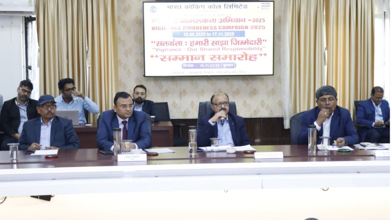 अपने अध्यक्षीय संबोधन में सीएमडी मनोज कुमार अग्रवाल ने सभी विभागों के प्रयासों की सराहना की। उन्होंने कहा कि सतर्कता अभियानों का संदेश तभी सार्थक होता है जब हम उसे अपने दैनिक कार्य-व्यवहार में भी अपनाएँ। उन्होंने जोर दिया कि बीसीसीएल जैसी विशाल संस्था में सतर्कता, उत्पादन, गुणवत्ता और सुरक्षा के मानकों का प्रभावी अनुपालन अत्यंत आवश्यक है।