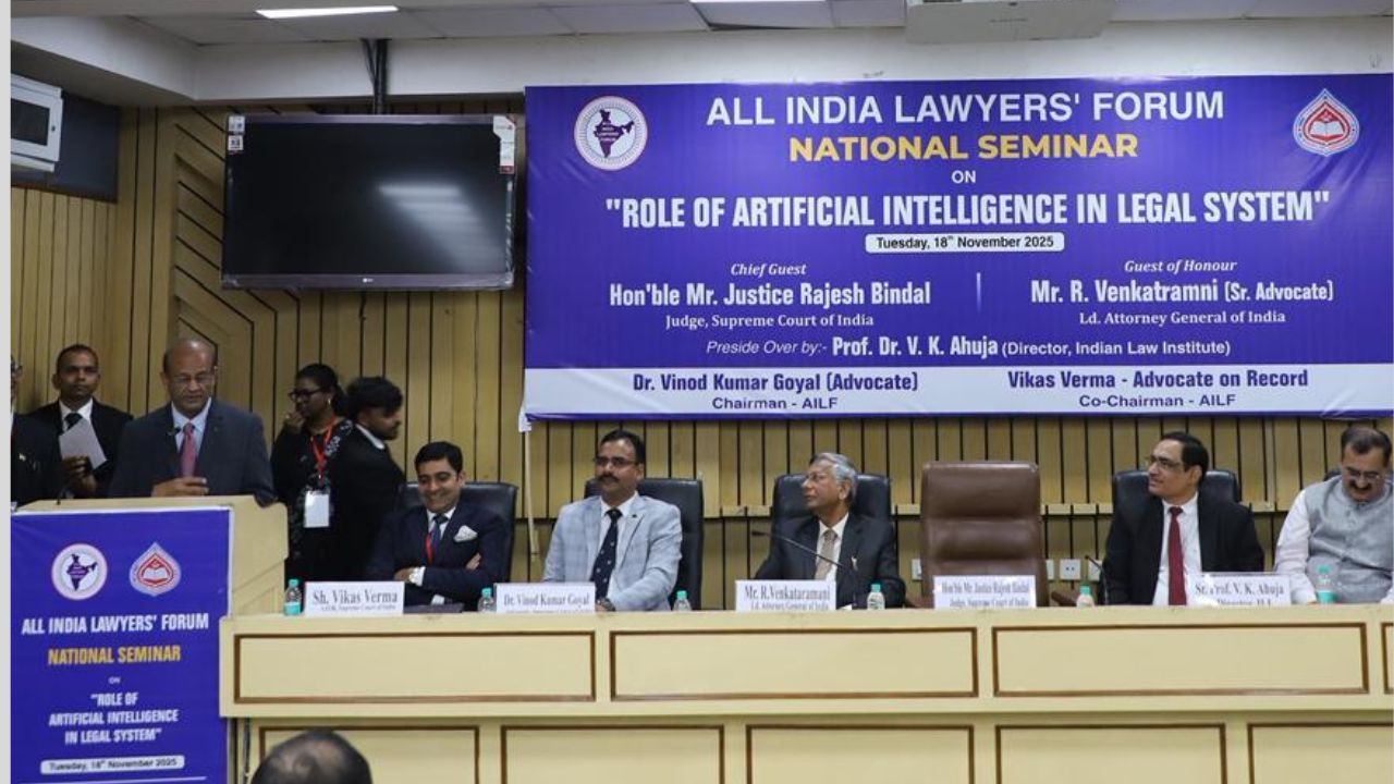 जस्टिस राजेश बिंदल ने यह बातें मंगलवार को ऑल इंडिया लॉयर्स’ फोरम (AILF) और इंडियन लॉ इंस्टीट्यूट (ILI) के संयुक्त तत्वावधान में “कानूनी प्रणाली में आर्टिफिशियल इंटेलिजेंस की भूमिका” विषय पर आयोजि राष्ट्रीय सेमिनार में बतौर मुख्य अतिथि कही। इस सेमिनार में विभिन्न उच्च न्यायालयों के न्यायाधीश, एजीआई, शीर्ष विधि विशेषज्ञ, वरिष्ठ अधिवक्ता, शोधकर्ता, तकनीक विशेषज्ञ और बड़ी संख्या में छात्र शामिल रहे।