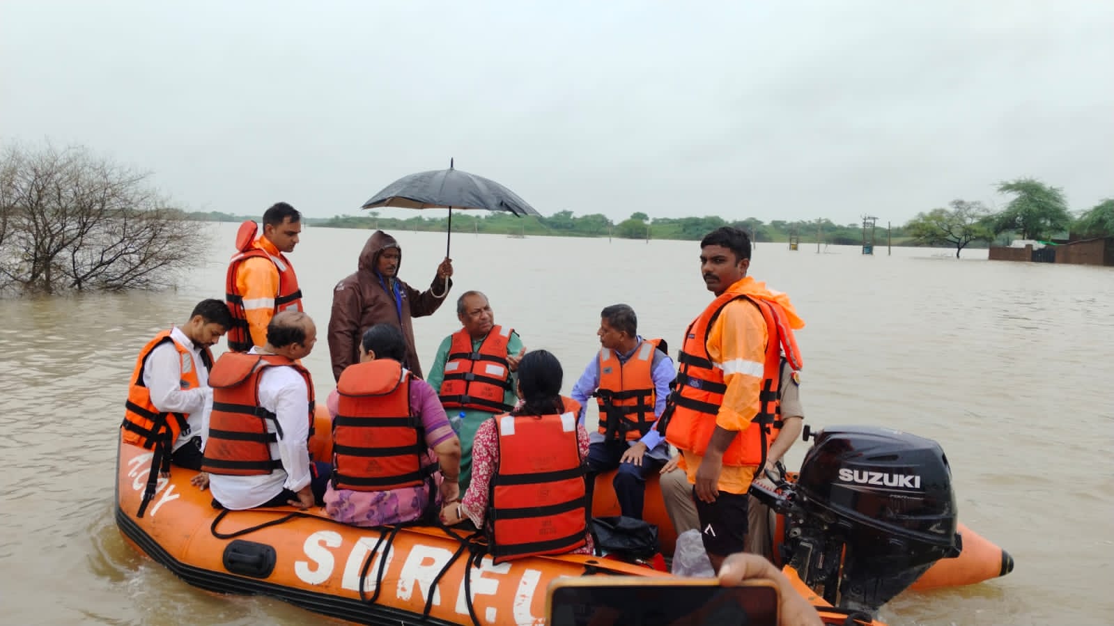 एसडीआरएफ टीम के साथ किया बाढ़ग्रस्त इलाकों का निरीक्षण