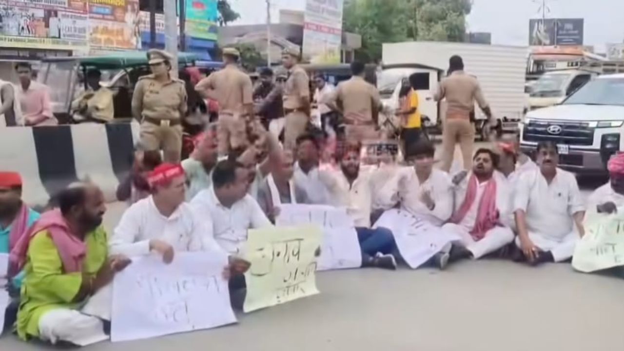 अखिलेश यादव की गिरफ्तारी के विरोध में प्रदर्शन