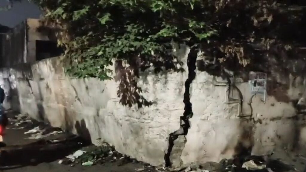 Bhilwara: शहर के मध्य कोतवाली थाने के सामने स्थित राजकीय उच्च माध्यमिक विद्यालय, राजेन्द्र मार्ग की चारदीवारी पिछले काफी समय से क्षतिग्रस्त होकर झुक चुकी है। दीवार के बीचोंबीच बड़ी दरार आ चुकी है और उसका एक हिस्सा किसी भी समय धराशायी हो सकता है। स्थानीय निवासियों ने आशंका जताई है कि यदि समय रहते मरम्मत नहीं की गई तो कोई गंभीर हादसा हो सकता है।
