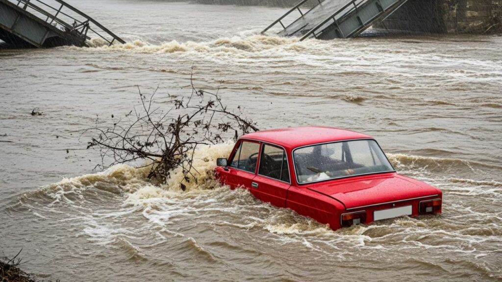 चालक ने नदी पार करने की कोशिश की कार पुल पर फंस गई और नदी के तेज बहाव में बहने लगी। वैन में सवार लोग खिड़की तोड़कर उसकी छत पर चढ़ गए और उनमें से एक ने अपने रिश्तेदार को फोन किया, जिसने घटना की सूचना पुलिस को दी।