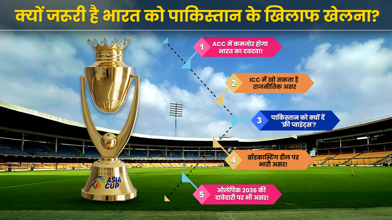 पहलगाम में हुए बर्बर आतंकी हमले और ऑपरेशन सिंदूर के बाद एक तरफ यह कहा जा रहा है कि 'खून और पानी एक साथ नहीं बहेंगे।' दूसरी तरफ एशिया कप में भारत और पाकिस्तान की टीमें एक-दूसरे के साथ खेलती दिखेंगी, ऐसे में सवाल यह है कि भारत की ऐसी कौन सी मजबूरी है कि उसे पाकिस्तान के साथ खेलना पड़ रहा है? इसके पीछे कौन से कारण हैं? अगर भारत पाक के साथ मैच का बॉयकॉट करता है तो क्या होगा? अगर आपके जेहन में भी ये सारे सवाल उमड़ रहे हैं तो अब आप बिल्कुल सही जगह पहुंच चुके हैं। क्योंकि यहां इन सारे प्रश्नों का जवाब है।