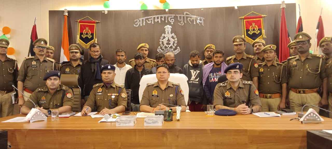 आजमगढ़: जनपद में पुलिस कप्तान हेमराज मीना के निर्देशन में अपराध व अपराधियों पर अंकुश एवं प्रभावी नियन्त्रण बनाये रखने हेतु अभियान के क्रम में मंगलवार को थाना शहर कोतवाली व थाना सिधारी की संयुक्त पुलिस टीम ने चोरी की घटना कारित करने वाले अन्तर्राजीय गिरोह के 8 शातिर अभियुक्तों को गिरफ्तार किया।