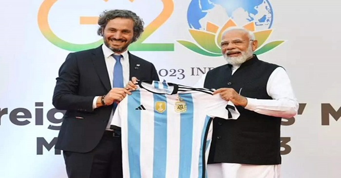 गौरतलब है कि पिछले महीने अर्जेंटीना की ऊर्जा कंपनी वाईपीएफ के अध्यक्ष पाबलो गोंजालेज ने मोदी को अर्जेंटीना की फुटबॉल टीम की जर्सी तोहफे में दी थी, जिसपर उनके कप्तान लियोनेल मेस्सी का नाम और उनका नंबर –10 छपा हुआ था।