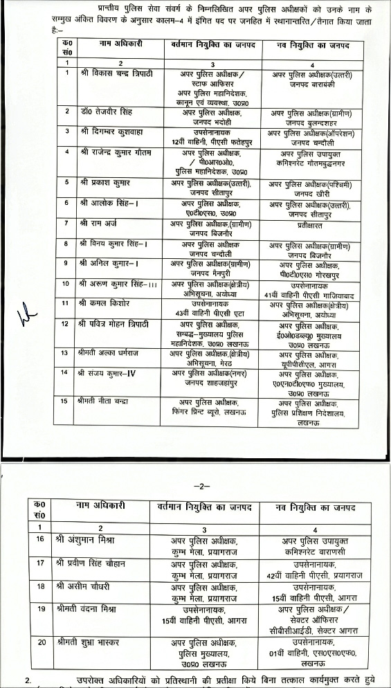बता दें कि बुधवार को शासन ने एएसपी रैंक के 16 आईपीएस अधिकारियों के तबादले किये थे।