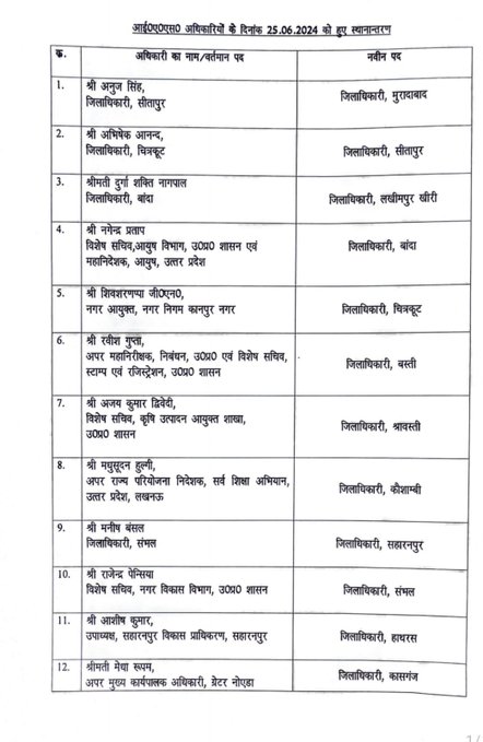 इसके साथ ही कई जिलों के जिलाधिकारियों का भी तबादला कर दिया गया है।