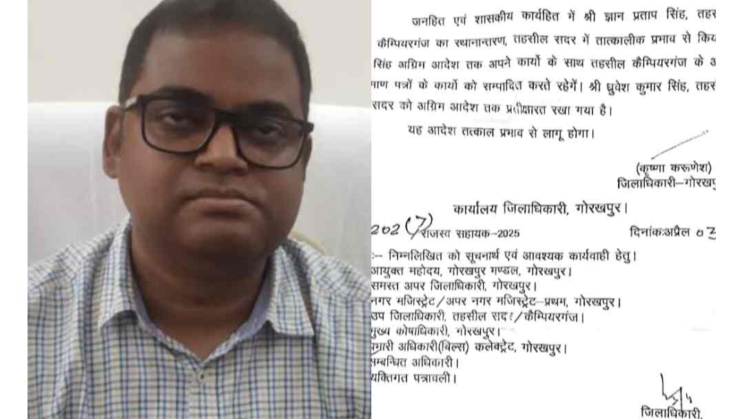डाइनामाइट न्यूज़ संवाददाता के अनुसार सदर तहसीलदार ध्रुवेश सिंह का नाम हाल ही में एक कथित गाली-गलौज प्रकरण में सामने आया था, जिसके बाद प्रशासन ने उन्हें प्रतिक्षालय में रख दिया । साथ ही कम्पियरगंज तहसीलदार ज्ञान प्रताप सिंह को सदर की जिम्मेदारी दे दी।तत्काल प्रभाव सदर तहसीलदार बना दिया गया जिलाधिकारी कार्यालय से जारी आदेश के अनुसार, यह निर्णय जनहित एवं शासकीय कार्यों की सुचारू व्यवस्था बनाए रखने के लिए लिया गया है। इस आदेश की प्रति आयुक्त गोरखपुर मंडल, समस्त अपर जिलाधिकारी, नगर मजिस्ट्रेट, उप जिलाधिकारी, मुख्य कोषाधिकारी सहित संबंधित अधिकारियों को भेजी गई है।