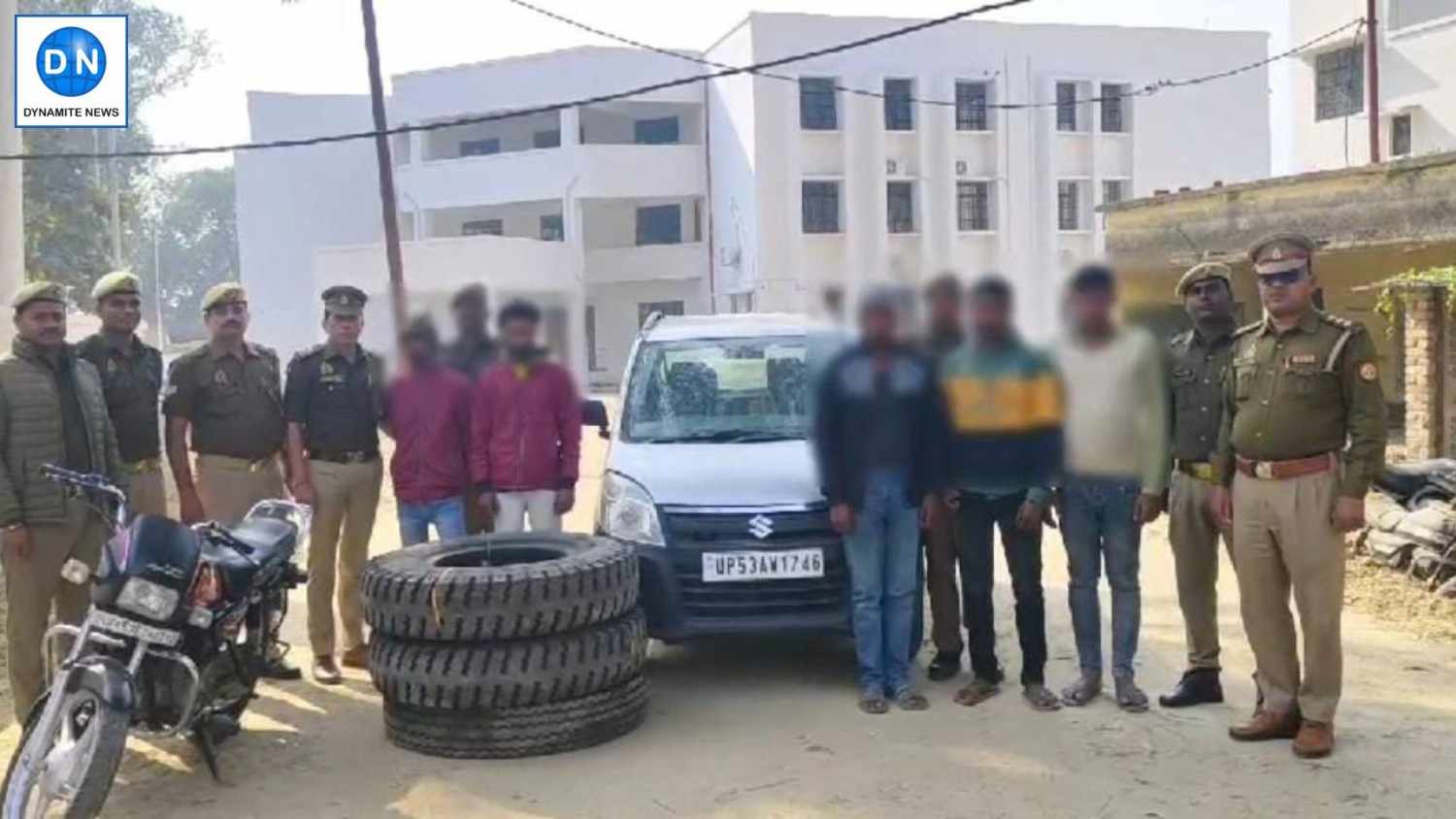 गोरखपुर: उत्तर प्रदेश के गोरखपुर जिले में पुलिस को बड़ी कामयाबी मिली है। यहां जिले के गीडा थाना क्षेत्र में पुलिस ने कार्रवाई करते हुए चोरी के एक गिरोह का पर्दाफाश किया है। इस कार्रवाई में पुलिस ने अब तक 5 आरोपियों को गिरफ्तार कर लिया है। पुलिस ने चोरों के पास से 3 ट्रक के टायर, एक कार, एक मोटरसाइकिल और कुल 17,950 रुपये नगद बरामद किए हैं।