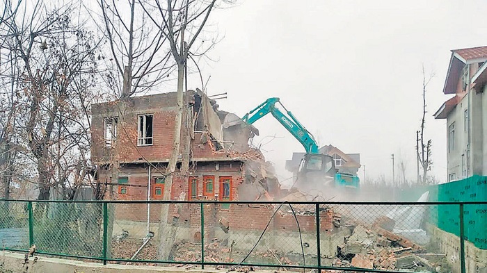 श्रीनगर: जम्मू कश्मीर के पुलवामा जिले में सरकारी जमीन पर निर्मित एक मदरसे की इमारत को ध्वस्त कर दिया गया है।