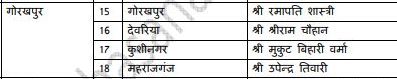 वहीं पास के ही जिला और सीएम योगी आदित्‍यनाथ के हृदय के सबसे करीब रहने वाले गोरखपुर के लिए मंत्री रमापति शास्‍त्री को नियुक्त किया गया है।