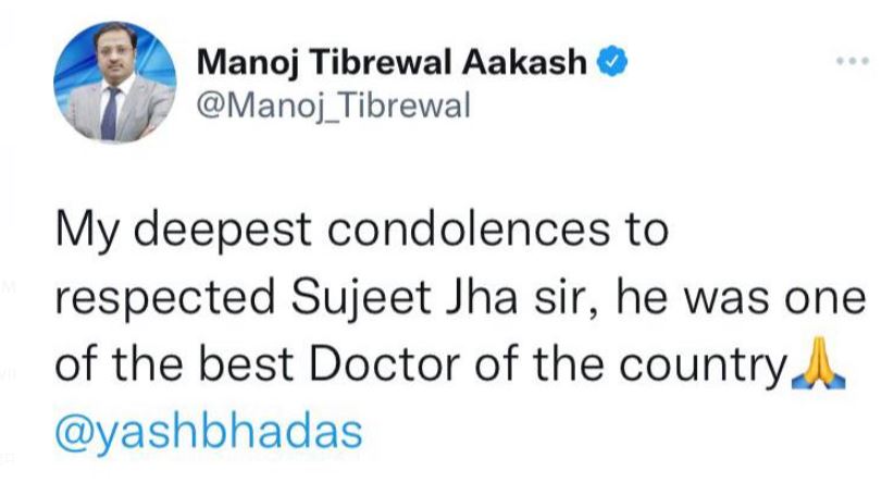 उन्होंने शनिवार देर शाम मैक्स हॉस्पिटल में अंतिम सांस ली। डॉ. झा के निधन पर देश के कई चिकित्सकों ने गहरा शोक जताया और उनके निधन को अपरूरणीय क्षति करार दिया।