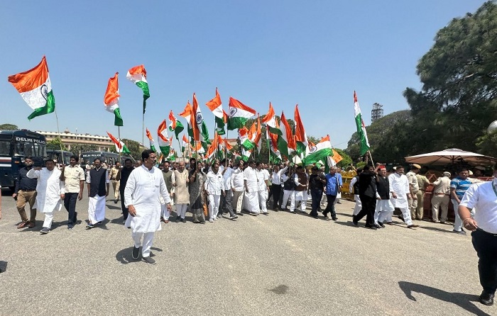 कांग्रेस के संगठन महासचिव के सी वेणुगोपाल ने कहा, ' यह तिरंगा मार्च संसद भवन से विजय चौक तक निकाला जाएगा।'