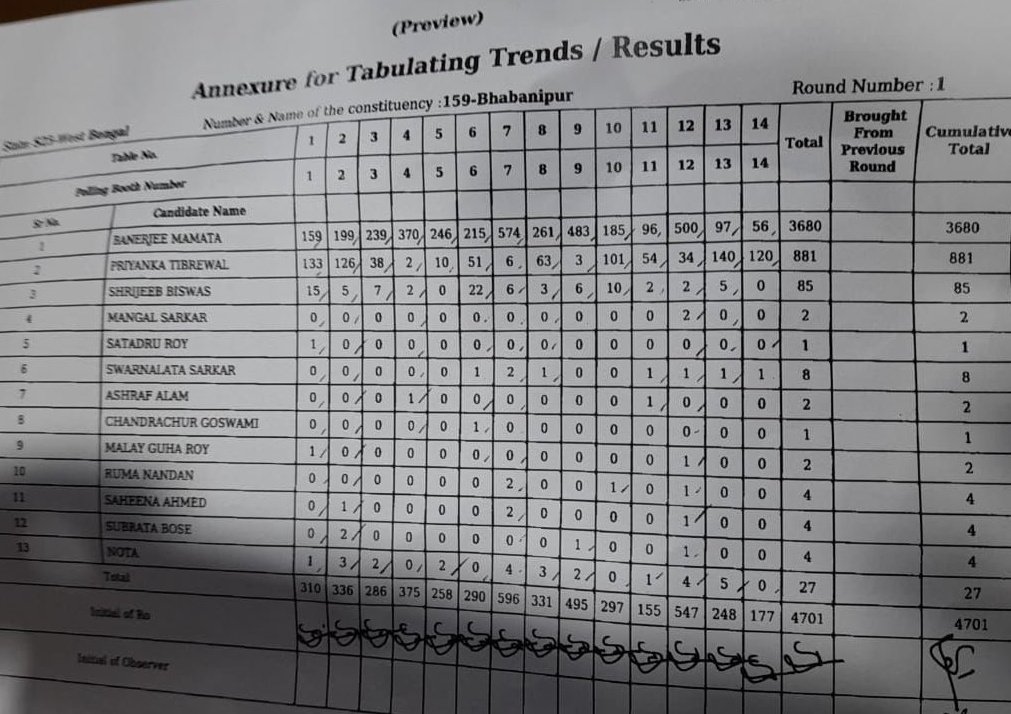 इससे पहले की गिनती में भी ममता बनर्जी लगातार लीड बनाये हुए हैं। सातवें राउंड के बाद टीएमसी चीफ ममता बनर्जी को 31033 वोट मिले हैं, जबकि भाजपा की प्रियंका टिबरेवाल को 5719 वोट हासिल हुआ है। इस तरह ममता बनर्जी काफी आगे निकल चुकीं है।