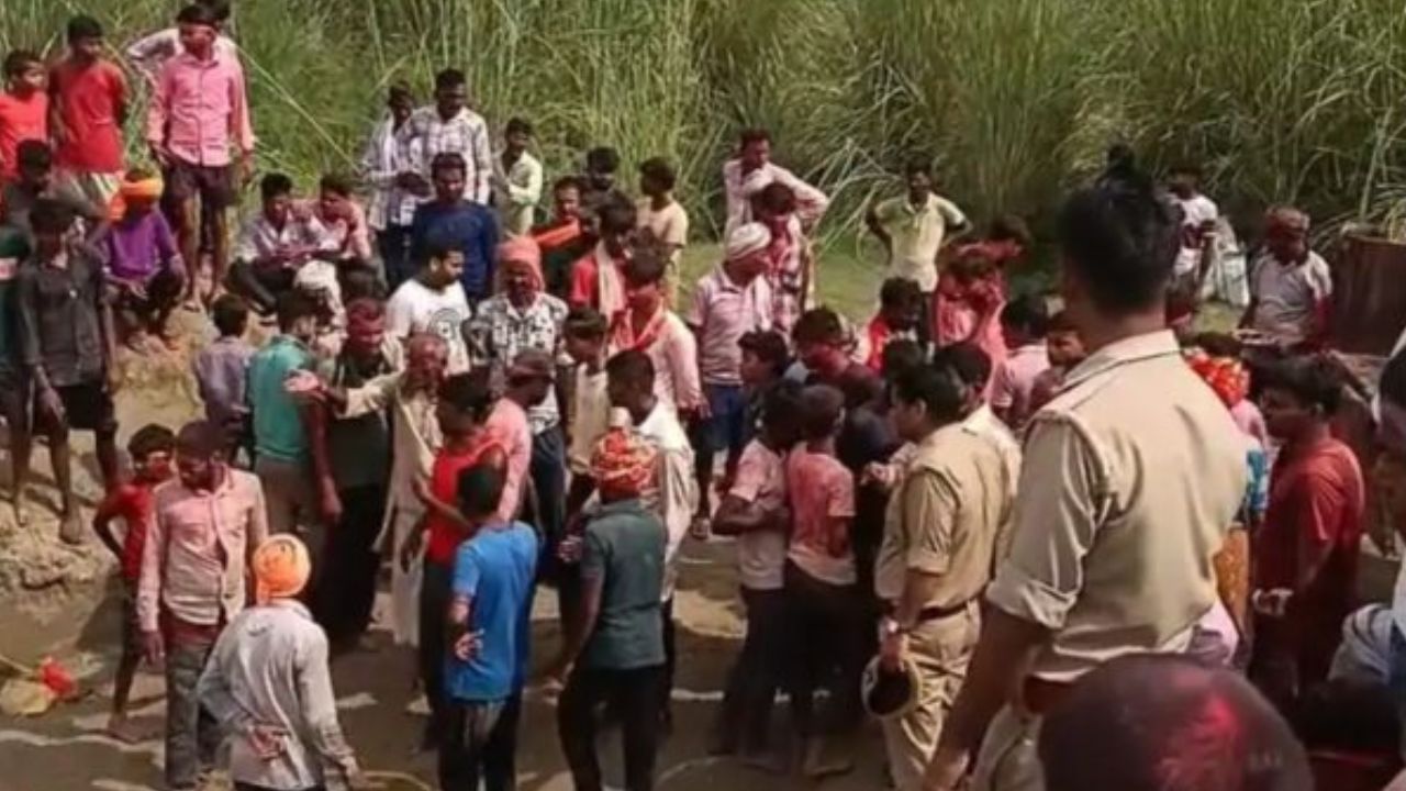 भिटौरा घाट पर भू-विसर्जन जारी, पुलिस बल तैनात