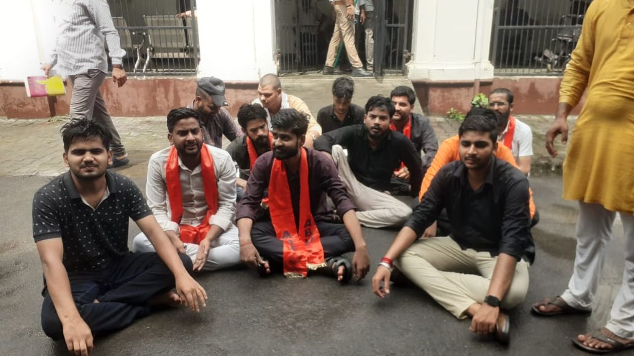 डीएम के खिलाफ कलेक्ट्रेट में धरने पर बैठे एबीवीपी कार्यकर्ता