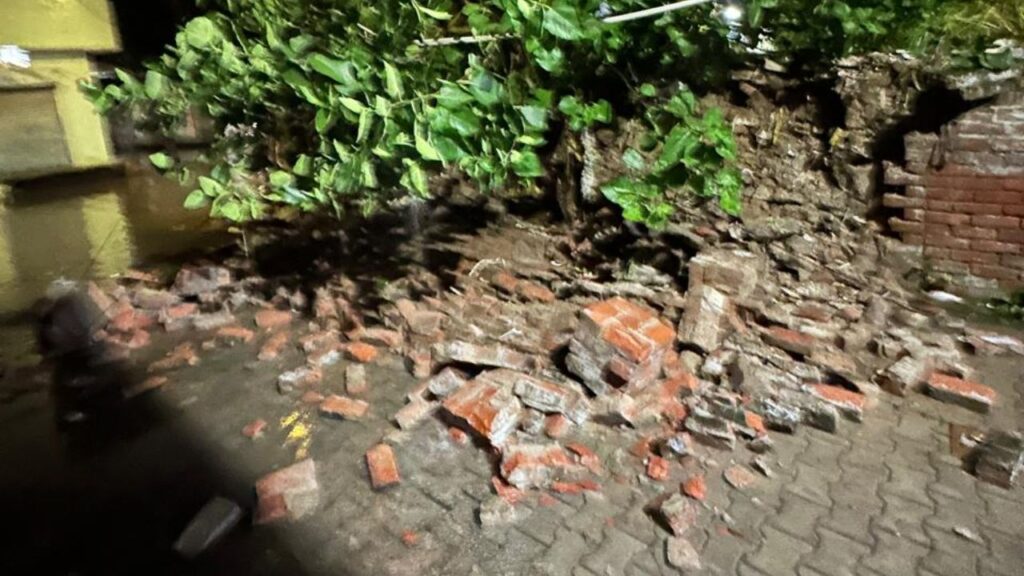 Aligarh: यूपी के अलीगढ़ में भारी बारिश के कारण एक दीवार भरभरा कर गिर गई, जिससे इलाके में अफरा-तफरी का माहौल बन गया। यह घटना अलीगढ़ के थाना बन्नादेवी इलाके के रिसाल सिंह नगर आईटीआई रोड की है, जहां पर करणी सेना के वरिष्ठ राष्ट्रीय उपाध्यक्ष ठा0 ज्ञानेंद्र सिंह चौहान के आवास के पास दीवार गिर गई। हालांकि, गनीमत रही कि इस हादसे में कोई जनहानि नहीं हुई।