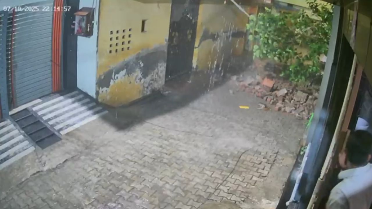 दीवार गिरने की घटना CCTV कैमरे में कैद हो गई, जिससे इस हादसे का पूरा मंजर सामने आया। वीडियो में साफ दिख रहा है कि कैसे तेज बारिश के दौरान दीवार अचानक गिर जाती है, जिससे पास खड़े वाहन और लोग बाल-बाल बच गए। हालांकि किसी प्रकार की जनहानि से बचने के कारण आसपास के लोग राहत की सांस ले पाए।