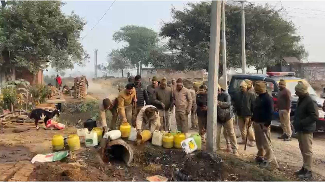Fatehpur: फतेहपुर पुलिस और आबकारी विभाग की संयुक्त टीम ने अवैध शराब के कारोबार पर बड़ी कार्रवाई की है। लंबे समय से मिल रही शिकायतों के बाद संयुक्त टीम ने बकेवर थाना क्षेत्र के कंजरन डेरा बेंता इलाके में छापेमारी की, जहां अवैध शराब का बड़ा जखीरा बरामद किया गया।छापेमारी के दौरान टीम को मौके से करीब 150 लीटर अवैध शराब, 12 भट्ठियां और शराब बनाने में इस्तेमाल होने वाले उपकरण बरामद हुए।