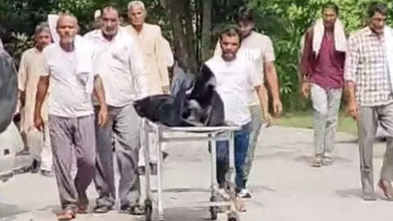 महिला के शव को ले जाते हुए परिजन