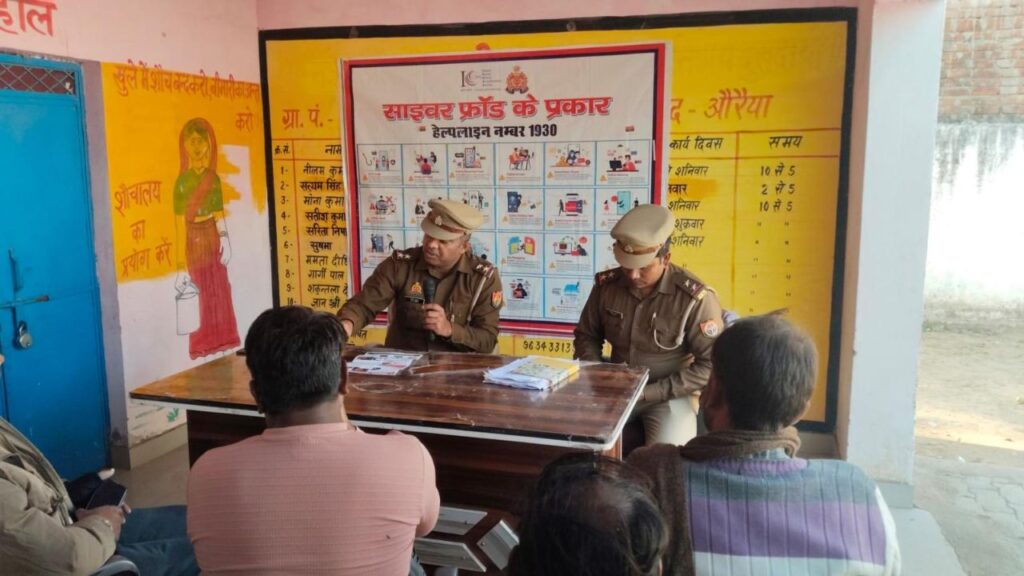 Auraiya: जनपद के थाना अयाना क्षेत्र अंतर्गत पुलिस ने साइबर अपराधों से बचाव के लिए लोगों को बड़ी सीख दी। पुलिस ने ग्राम पंचायत नवादा ज्वाला प्रसाद के पंचायत भवन में साइबर अपराधों से बचाव को लेकर जागरूकता कार्यक्रम का आयोजन किया। कार्यक्रम की अध्यक्षता थाना अध्यक्ष अजय कुमार ने की।