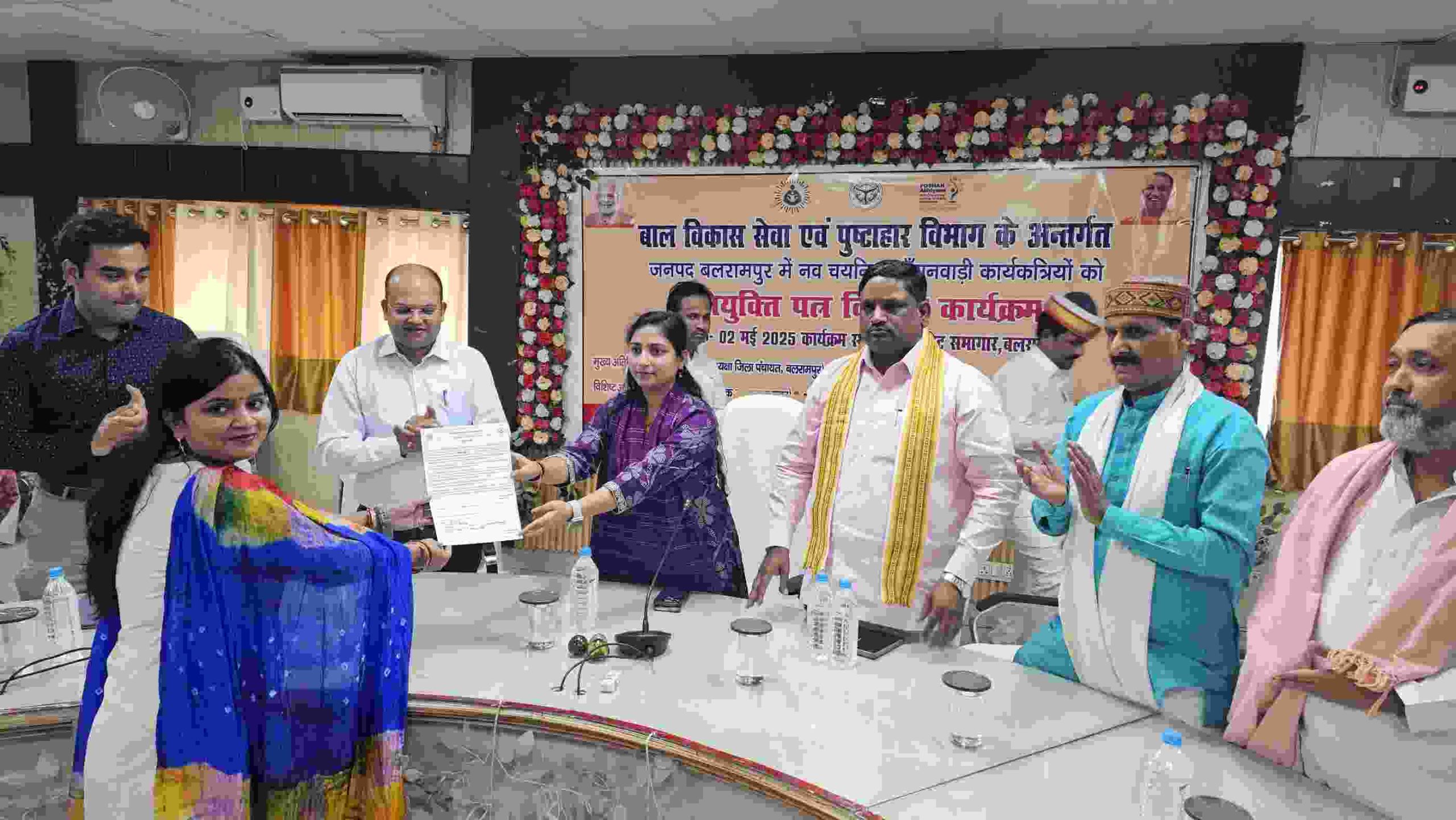बलरामपुर: उत्तर प्रदेश के बलरामपुर में शुक्रवार को कलेक्ट्रेट सभागार में नव चयनित आंगनवाड़ी कार्यकत्रियों को नियुक्ति पत्र वितरित किया गया। नियुक्ति पत्र पाकर आंगनवाड़ी कार्यकत्रियों के चेहरे खिल उठे।
