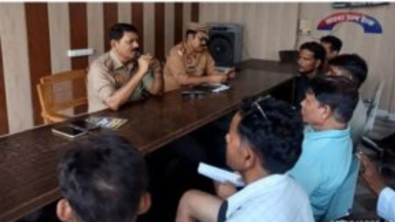 ई रिक्शों के सत्यापन को लेकर बैठक करते पुलिस अधिकारी