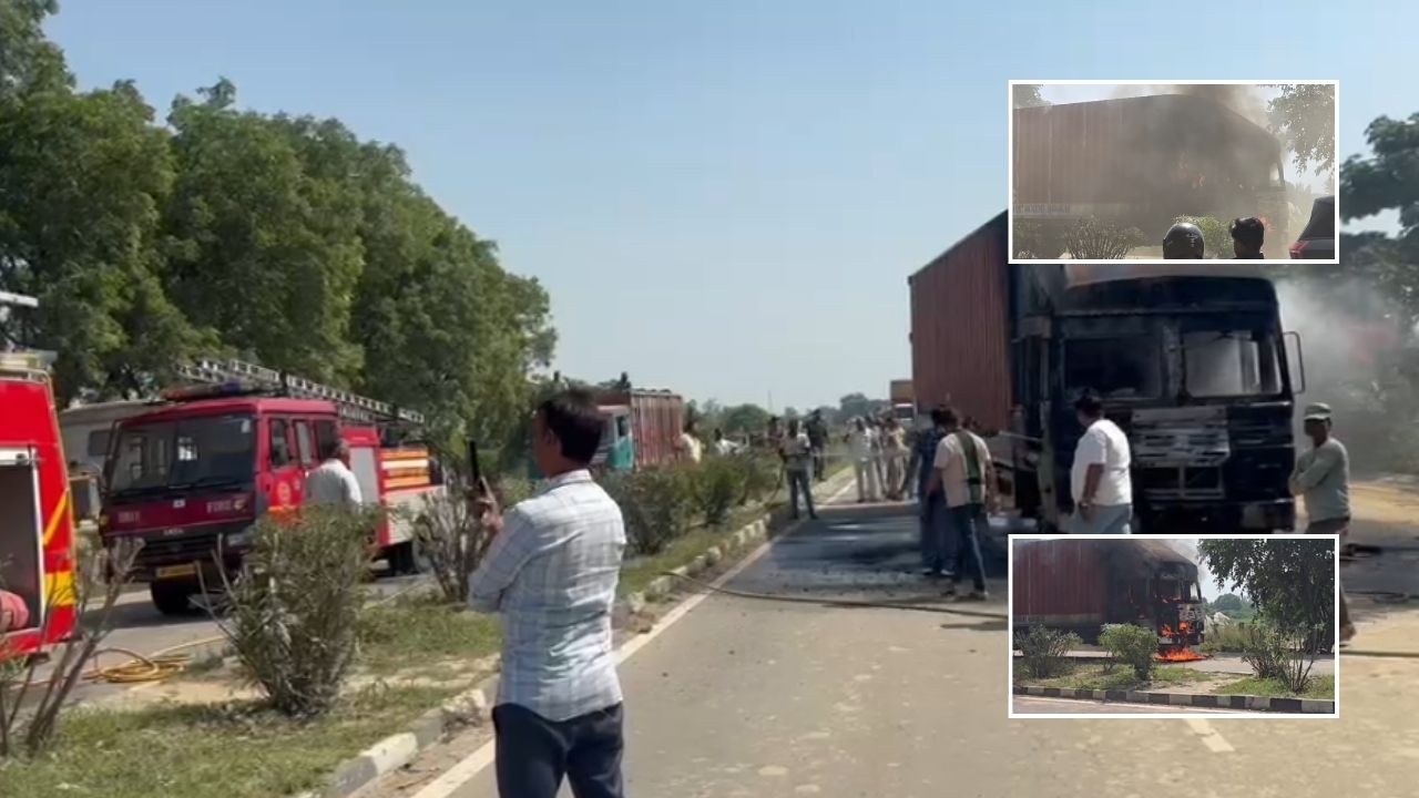 रायबरेली में चलते ट्रक में लगी भीषण आग