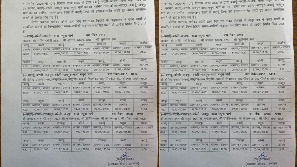 नए टाइम टेबल के अनुसार बदायूं से कई प्रमुख मार्गों पर बसों का संचालन सुनिश्चित किया गया है। इनमें बदायूं-बरेली-अजमेर, बदायूं-बरेली-रुद्रपुर-जयपुर और बदायूं-बरेली-टनकपुर-जयपुर जैसे महत्वपूर्ण रूट शामिल हैं। इन मार्गों पर नियमित बस सेवाएं उपलब्ध होने से यात्रियों को लंबी दूरी के सफर में आसानी होगी।