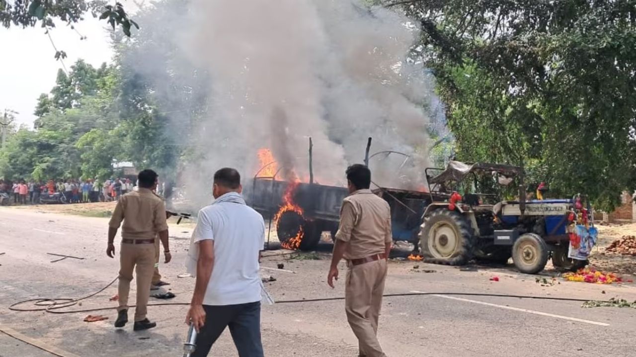 जानकारी के मुताबिक, इस घटना से हाईवे पर अफरा-तफरी मच गई। बताया गया कि हादसा एक ट्रैक्टर-ट्रॉली से हुआ, जिसमें कांवड़िये भी सवार थे। ट्रैक्टर चालक को बंधक बनाकर पीटा गया। सूचना मिलने पर थाना पुलिस मौके पर पहुंची और स्थिति को नियंत्रित किया। दमकल विभाग के कर्मचारियों ने आग पर काबू पा लिया है।