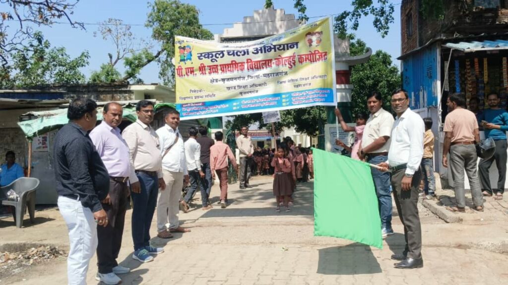 Maharajganj: जनपद के कोल्हुई कस्बे स्थित पीएम श्री उच्च प्राथमिक विद्यालय में खंड शिक्षा अधिकारी अगणित प्रसाद के नेतृत्व में ‘स्कूल चलो अभियान’ के अंतर्गत एक भव्य जागरूकता रैली का आयोजन किया गया। इस रैली का मुख्य उद्देश्य क्षेत्र के अधिक से अधिक बच्चों को शिक्षा की मुख्यधारा से जोड़ना और अभिभावकों में शिक्षा के प्रति जागरूकता फैलाना था।