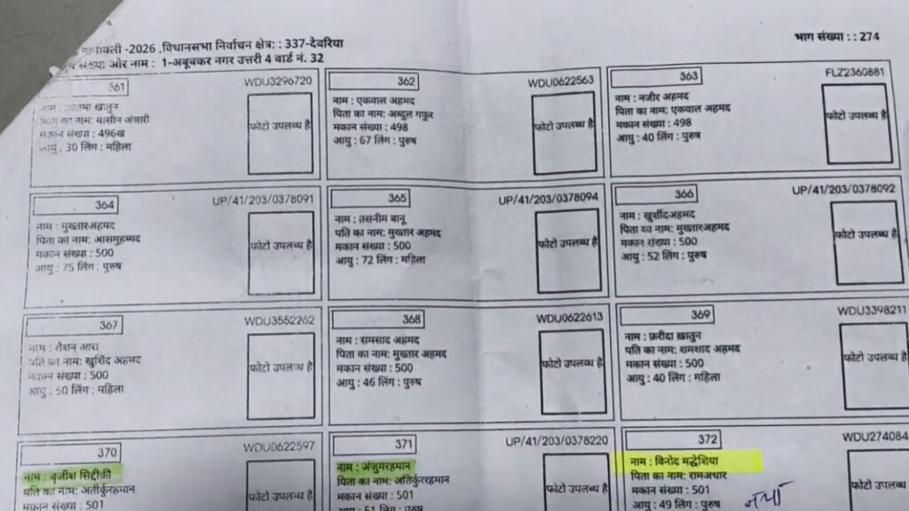 Deoria: उत्तर प्रदेश के देवरिया जिले से मतदाता सूची में गंभीर अनियमितता का मामला सामने आया है। विशेष संक्षिप्त पुनरीक्षण (SIR) प्रक्रिया के बाद एक मुस्लिम परिवार के पते पर कथित तौर पर सात हिंदू मतदाताओं के नाम जोड़ दिए गए। इस मामले के सामने आते ही प्रशासनिक स्तर पर हलचल मच गई है और मतदाता सूची की पारदर्शिता पर सवाल खड़े हो गए हैं।