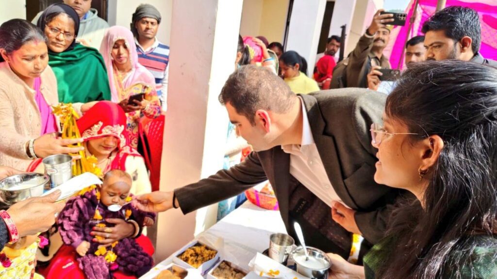 जिलाधिकारी ने ग्राम में नवनिर्मित अन्नपूर्णा भवन का फीता काटकर उद्घाटन किया। इसके अलावा उन्होंने गर्भवती महिलाओं की गोद भराई और बच्चों का अन्नप्राशन भी कराया।