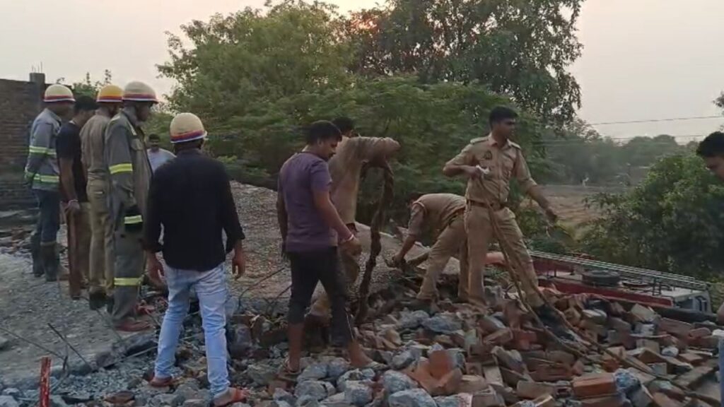 क्षतिग्रस्त मकान से मलाब हटाते रेस्क्यू टीम