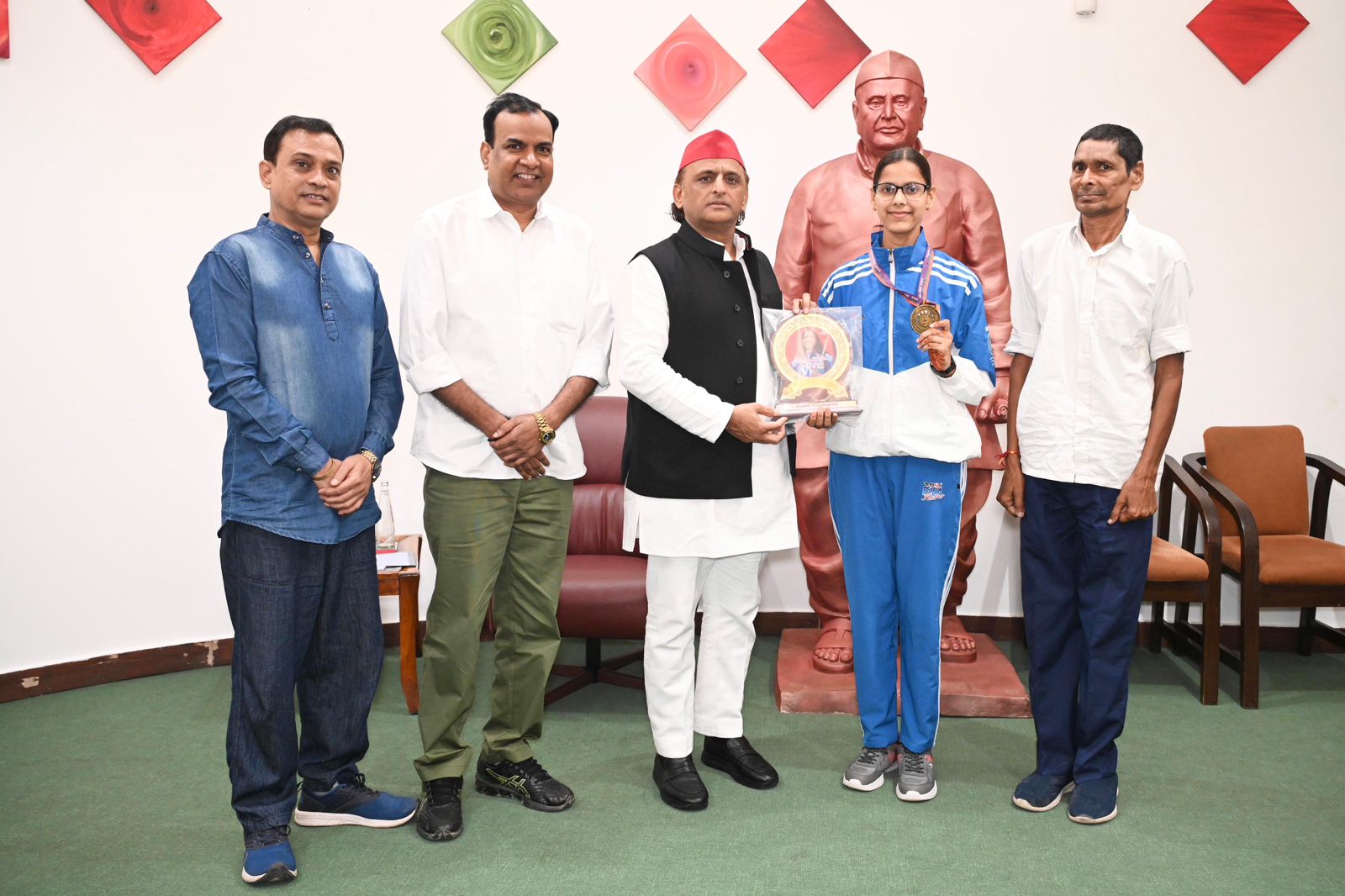 नीतू सिंह की इस शानदार उपलब्धि को देखते हुए समाजवादी पार्टी के राष्ट्रीय अध्यक्ष एवं पूर्व मुख्यमंत्री अखिलेश यादव ने उन्हें “प्रतिभा प्रेरणा माता सावित्री बाई फूले पुरस्कार” से सम्मानित किया। यह सम्मान समारोह रविवार को लखनऊ स्थित समाजवादी पार्टी मुख्यालय पर आयोजित किया गया। कार्यक्रम के दौरान अखिलेश यादव ने नीतू को स्मृति चिन्ह भेंट किया और उनके उज्ज्वल भविष्य की कामना की। इस अवसर पर प्रसिद्ध हास्य कलाकार राजीव निगम भी विशेष रूप से उपस्थित रहे।