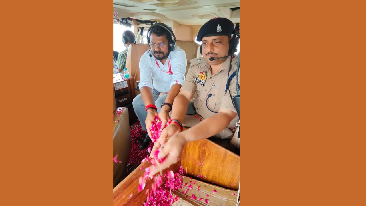अवसनेश्वर मंदिर पर हेलीकॉप्टर से पुष्पवर्षा
