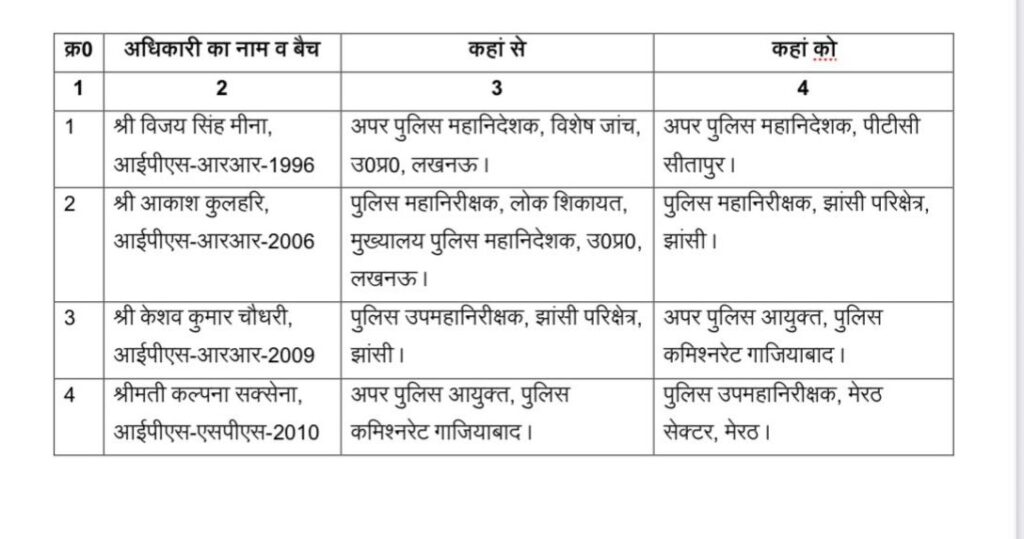 वहीं, आकाश कुलहरि, आईपीएस आरआर-2006 बैच के अधिकारी हैं, जिन्हें पुलिस महानिरीक्षक लोक शिकायत से झांसी क्षेत्र के पुलिस महानिरीक्षक पद पर स्थानांतरित किए गए हैं।