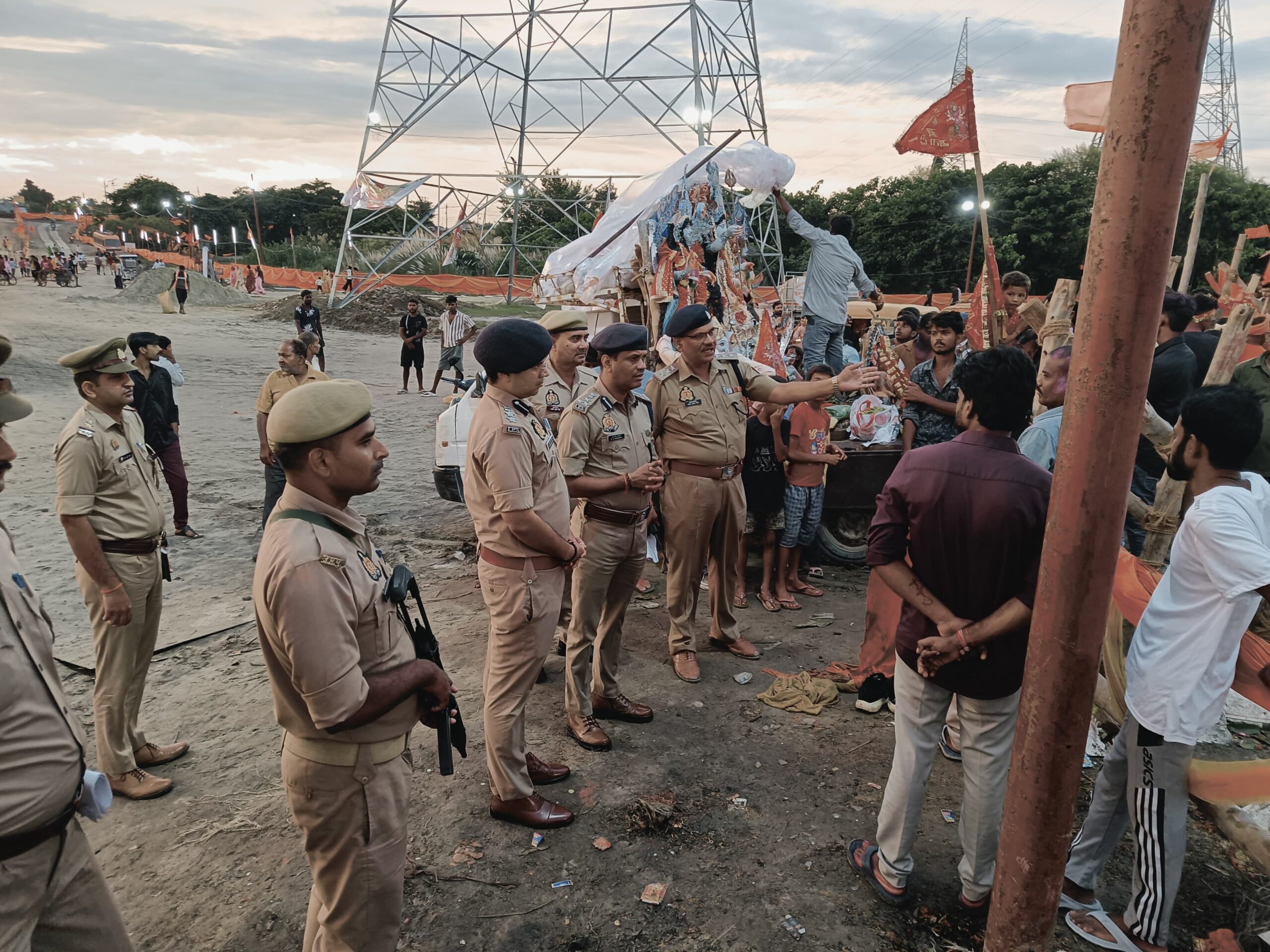 शारदीय नवरात्रि के समापन उपरांत मां दुर्गा की प्रतिमाओं के विसर्जन को लेकर शुक्रवार को प्रशासन और पुलिस-प्रशासन पूरी तरह अलर्ट नजर आया। इसी क्रम में आज पुलिस उपमहानिरीक्षक परिक्षेत्र गोरखपुर और वरिष्ठ पुलिस अधीक्षक गोरखपुर ने प्रतिमा विसर्जन स्थलों का संयुक्त निरीक्षण कर सुरक्षा एवं व्यवस्थाओं का जायजा लिया।