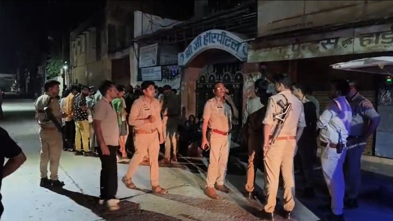 श्री जी हॉस्पिटल के बाहर पुलिस बल तैनात