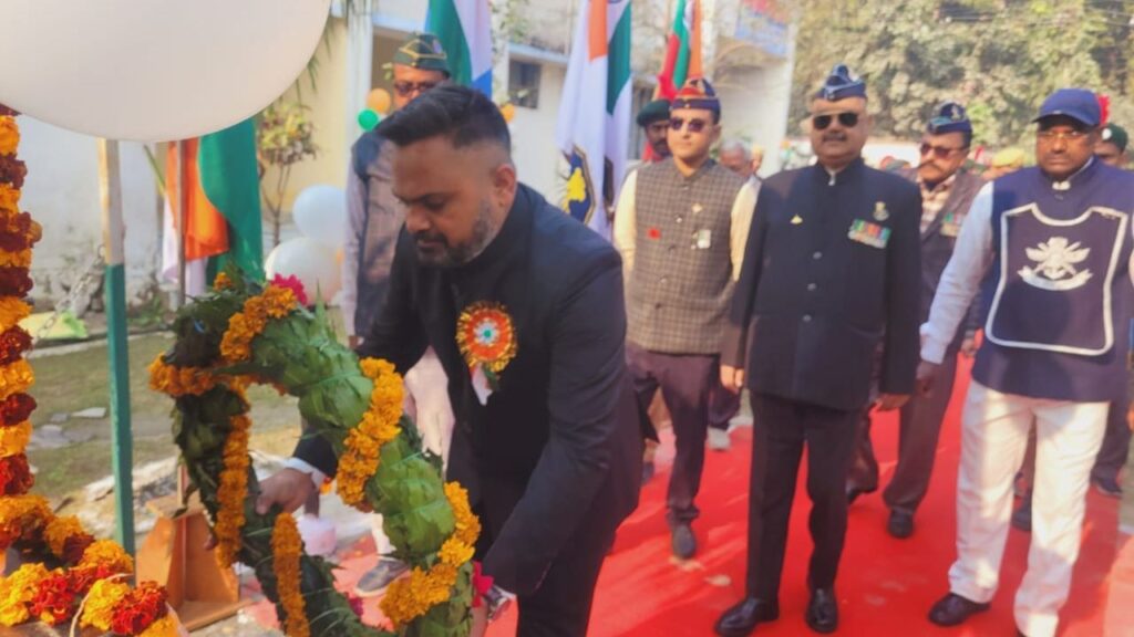 वीर शहीदों को नमन और पुष्पांजलि अर्पित करते अधिकारी