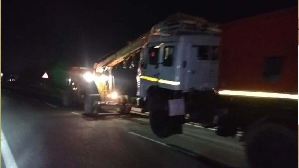 जेसीबी ट्रक हटाते हुए