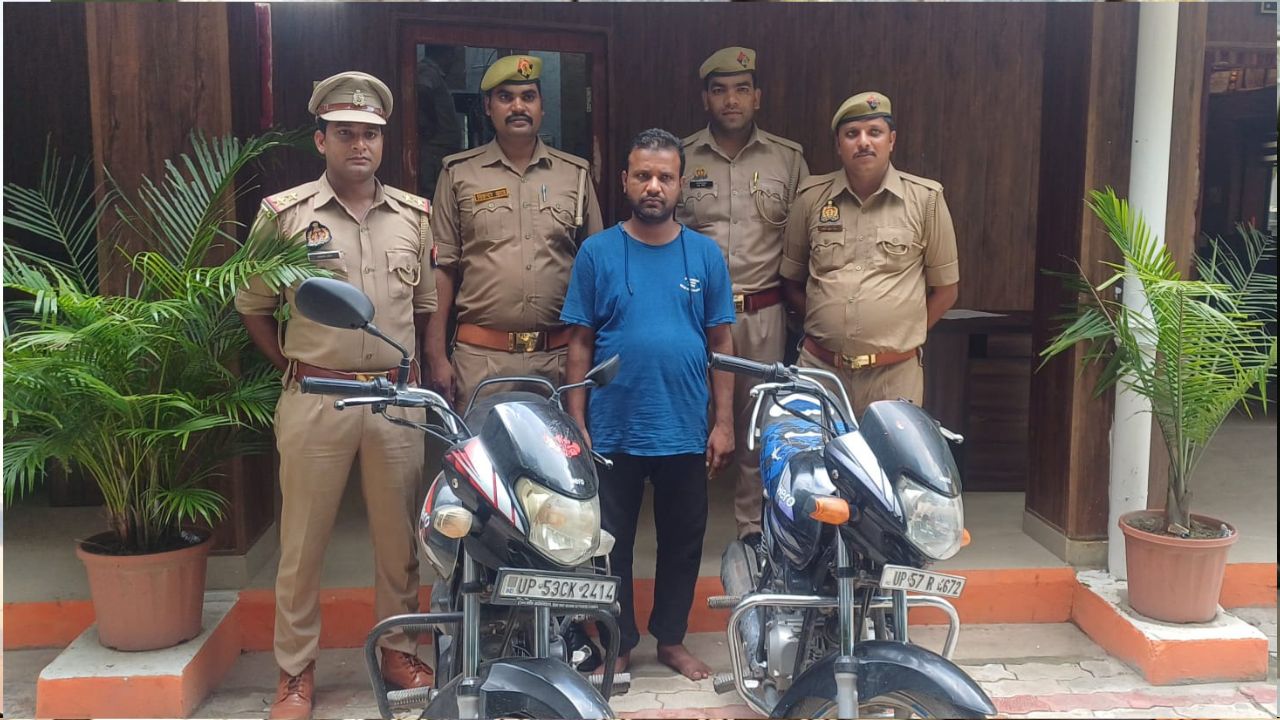 कोठीभार थाने के प्रभारी निरीक्षक धर्मेंद्र सिंह व सिसवा चौकी प्रभारी उमाकांत सरोज के नेतृत्व में टीम गठन कर बाइक चोरो को पकड़ने के मुहीम पर लगाया था। बीती मंगलवार की रात सिसवा कस्बे के चोखराज स्कूल के समीप नहर के पास एक व्यक्ति मोटरसाइकिल से आता दिखाई दिया पुलिस टीम द्वारा रोक कर गाड़ी के दस्तावेज तलब किया गया तो बाइक सवार दस्तावेज नही दिखा पाया। जिसके बाद पुलिस टीम ने ज़ब कड़ाई से पूछताछ की तो उसने अपना पहचान नूरआलम निवासी बरगहा थाना नेबुआ नौरंगिया, कुशीनगर के रूप में की गई।