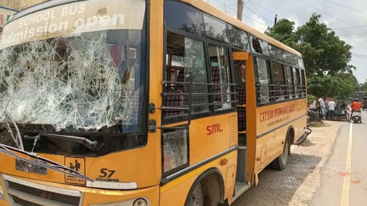 छात्रों ने बस पर पत्थरबाजी की