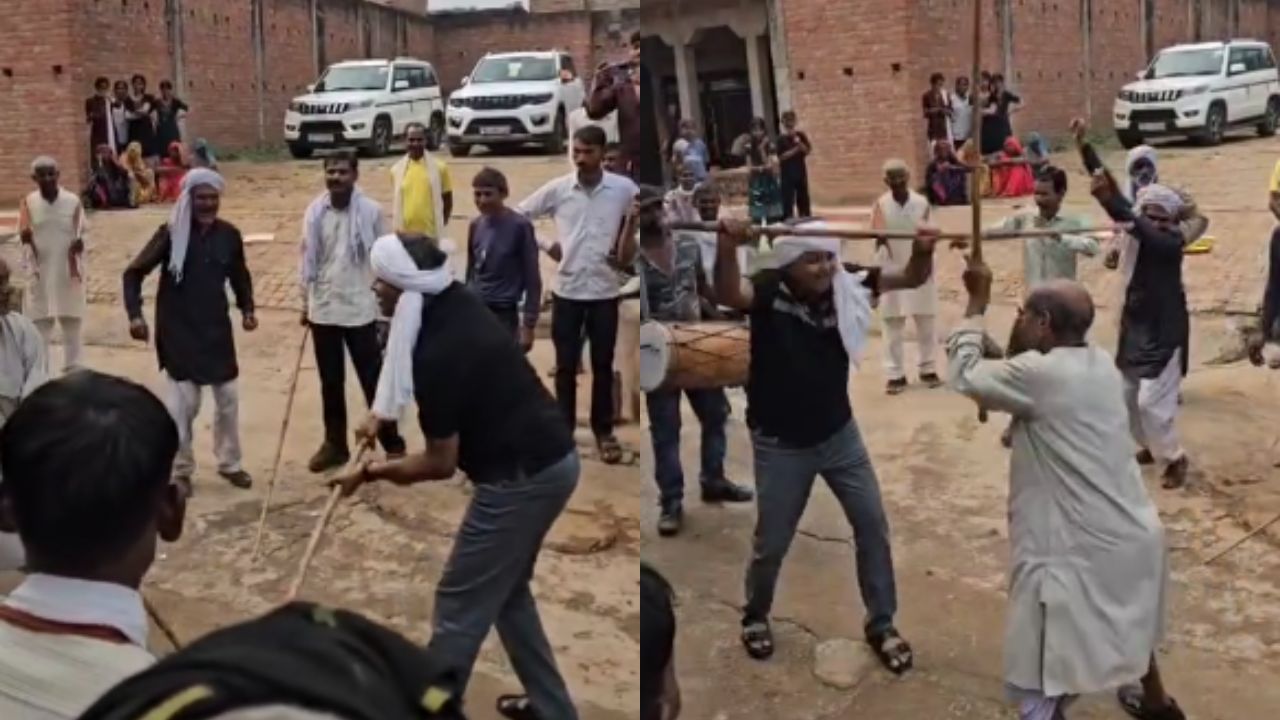 Hamirpur: यूपी के हमीरपुर के सदर विधायक मनोज प्रजापति ने बुंदेलखंडी परंपरा को जीवंत करते हुए अपने पैतृक गांव पौथिया में दीवारी खेल में भाग लिया। हाथों में लाठी लेकर विधायक ने बुजुर्गों और ग्रामीणों के साथ मैदान में उतरकर अपनी कुशलता और उत्साह का प्रदर्शन किया।