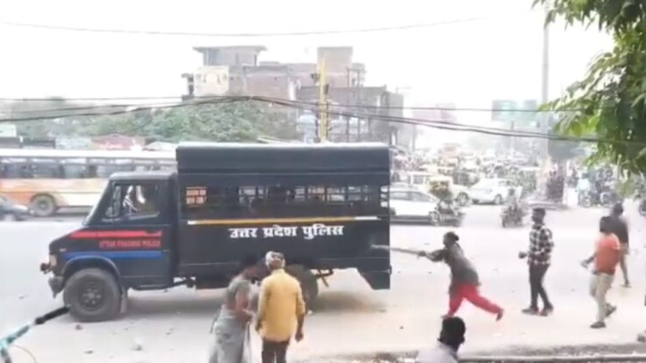 पुलिस ने जब शव हटाने का प्रयास किया, तो धक्कामुक्की शुरू हो गई। गुस्साए ग्रामीणों ने पुलिस वैन पर ईंट-पत्थर बरसाने शुरू कर दिए। वैन के अंदर छिपे पुलिसकर्मी खुद को बचाने की कोशिश करते नजर आए। एक वीडियो में साफ दिख रहा है कि भीड़ ने वैन का आगे का शीशा तोड़ दिया और अंदर बैठे जवानों पर पत्थर फेंके।