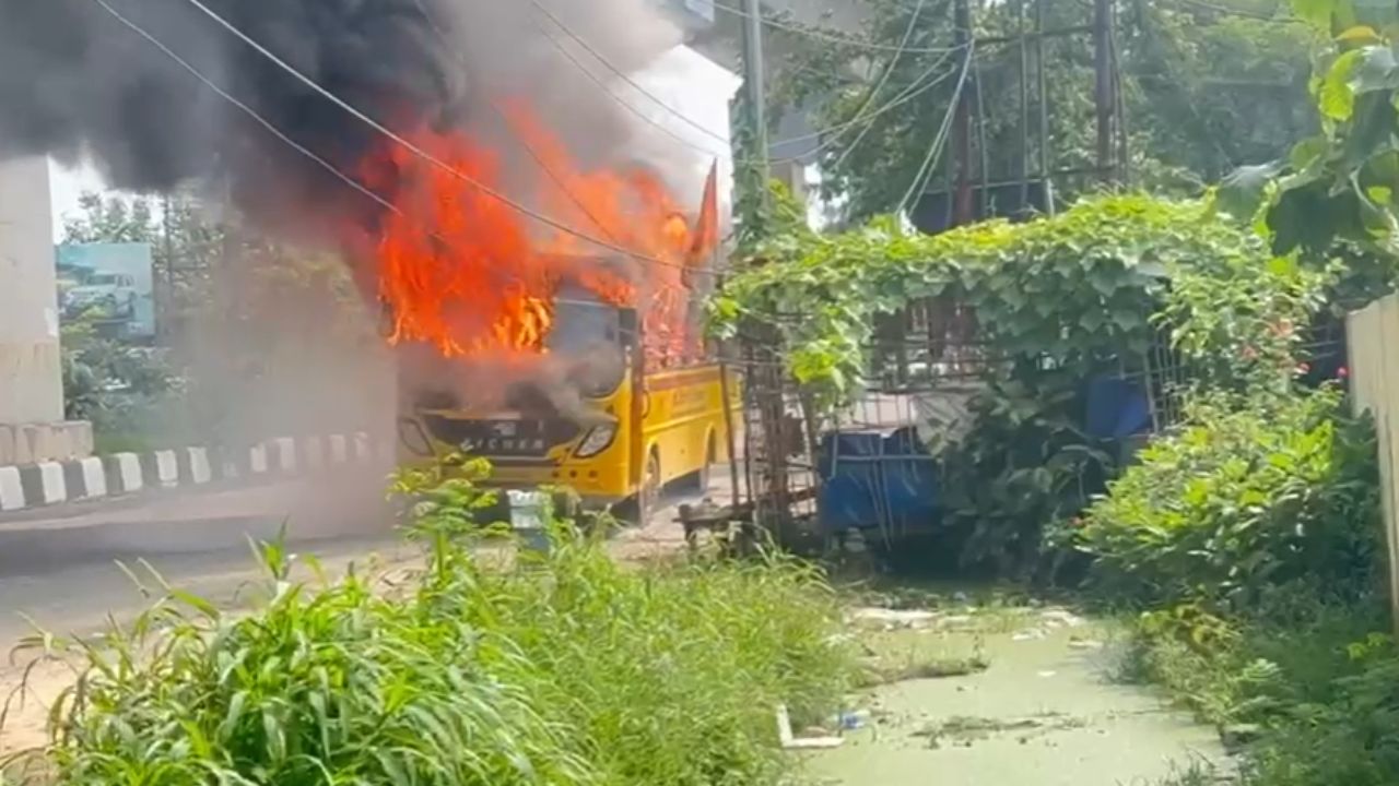 स्कूल बस में लगी आग