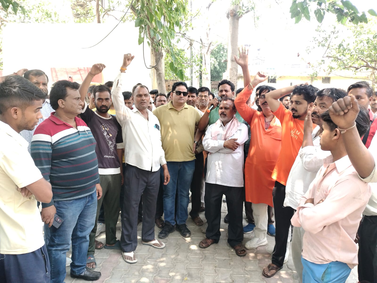 मंडी में प्रशासन के खिलाफ व्यापारियों का प्रदर्शन ( सोर्स- रिपोर्टर )